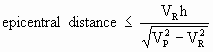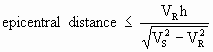 where: propagation vel: VR=Rayleigh, VP=P wave, VS=S wave, h = depth of source