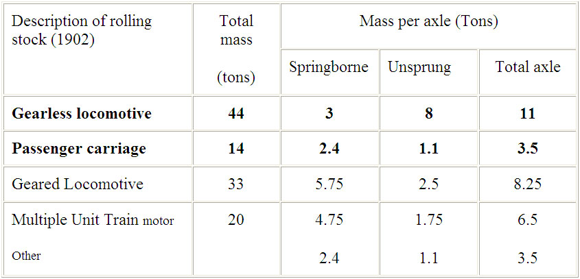 Table 2.1 Mass per axle of various classes of rolling stock (Mallock, 1902)