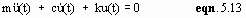 Returning to eqn. 5.4, it has been shown that p(t) can be used to represent a load applied directly, or an effective load resulting from support motion. If we assume in the first instance that there is no applied load, we can obtain the free vibration response, obtained as a solution of the homogeneous differential eqn. 5.13: