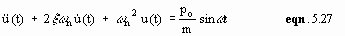Returning to eqn. 5.4, we can assume a harmonically varying load p(t) of sine wave form, with amplitude po and driving frequency w . Divide by m and note that c/m=2x w n gives: