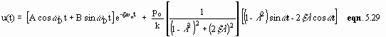 The complementary solution of the homogeneous form of this equation is the damped free vibration response given by eqn. 5.22. The particular solution is of the form: