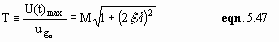 The magnification factor (M) and the phase angle (f ) are shown in Figure 5.1 and Figure 5.2, for various values of damping ratio x . The frequency at which maximum displacement response occurs (resonance frequency), is not at the undamped natural frequency w n, but at a frequency slightly less than this according to eqn. 5.34. Whereas velocity response peaks at w n and acceleration response peaks at a frequency slightly above w n (see Blake , 1995). For low values of damping these differences may be ignored.