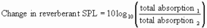 An alteration of the sound absorption in a room will affect the reverberant component of SPL which can be estimated using the following equation (Taylor, 1975):